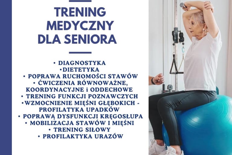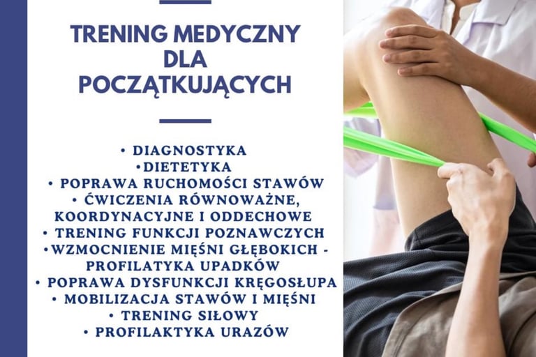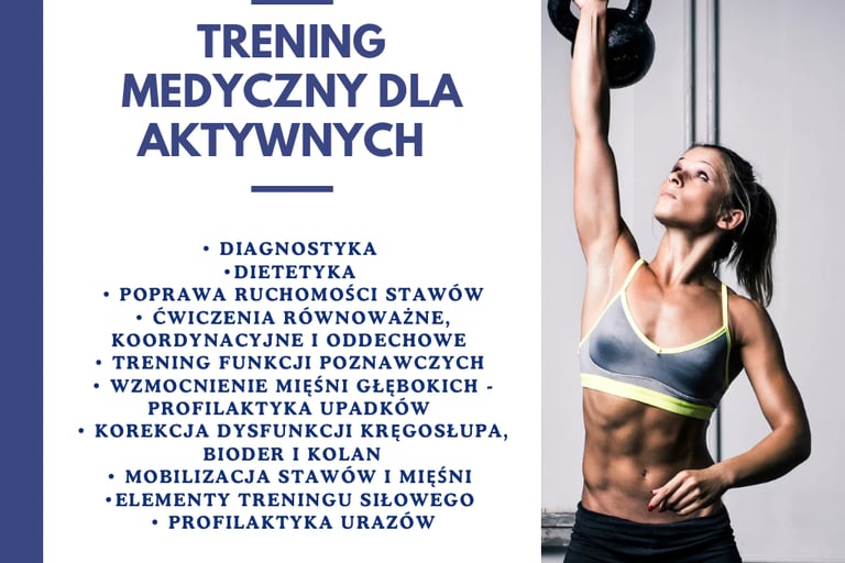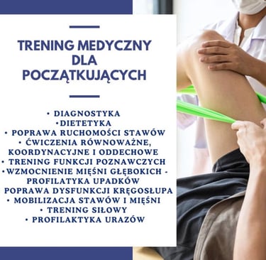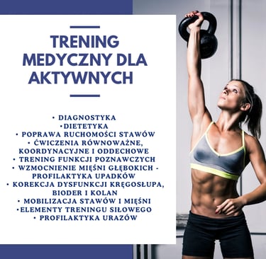 Trening medyczny to połączenie elementów fizjoterapii z treningiem personalnym, które ma na celu wspieranie i podtrzymania prawidłowych wzorcy ruchowych, zakresów ruchomości oraz pomaganie w powrocie do aktywności fizycznej.